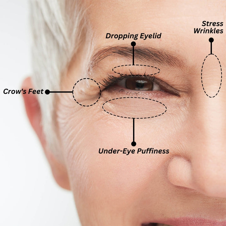 What are the signs of aging around the eye area?