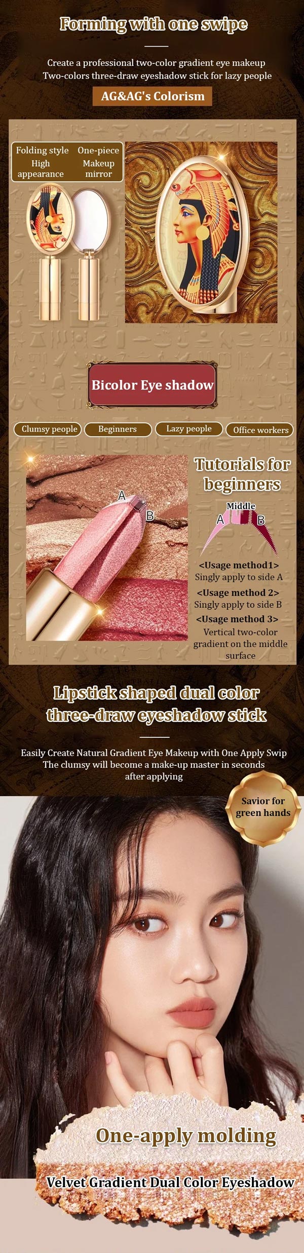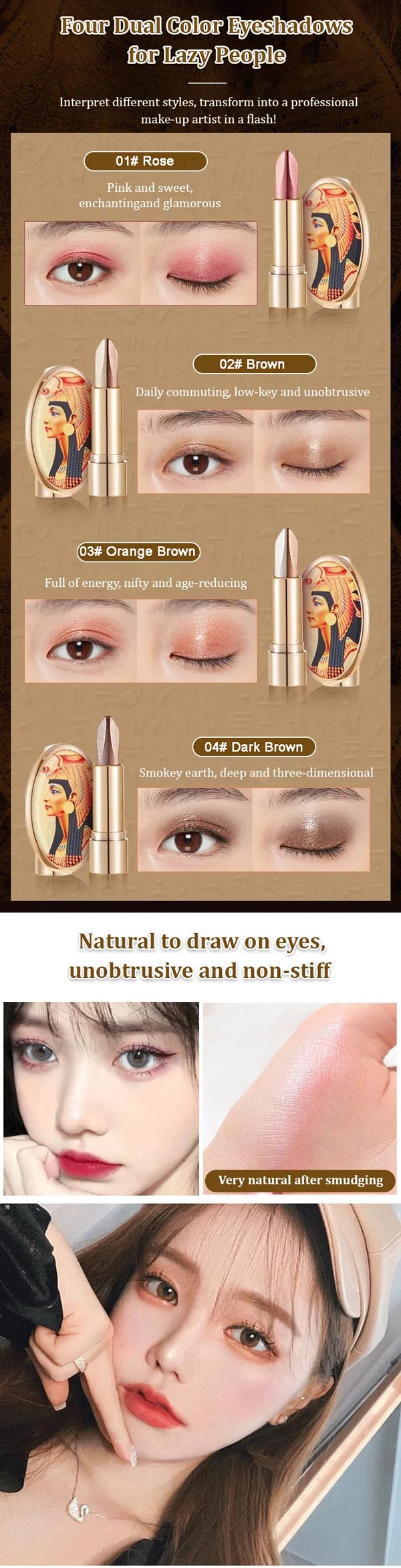 Get ready to dazzle with the Dual-Tone Luxury Lazy Eyeshadow Stick!  Achieve effortless glamour with just a swipe of this innovative product.